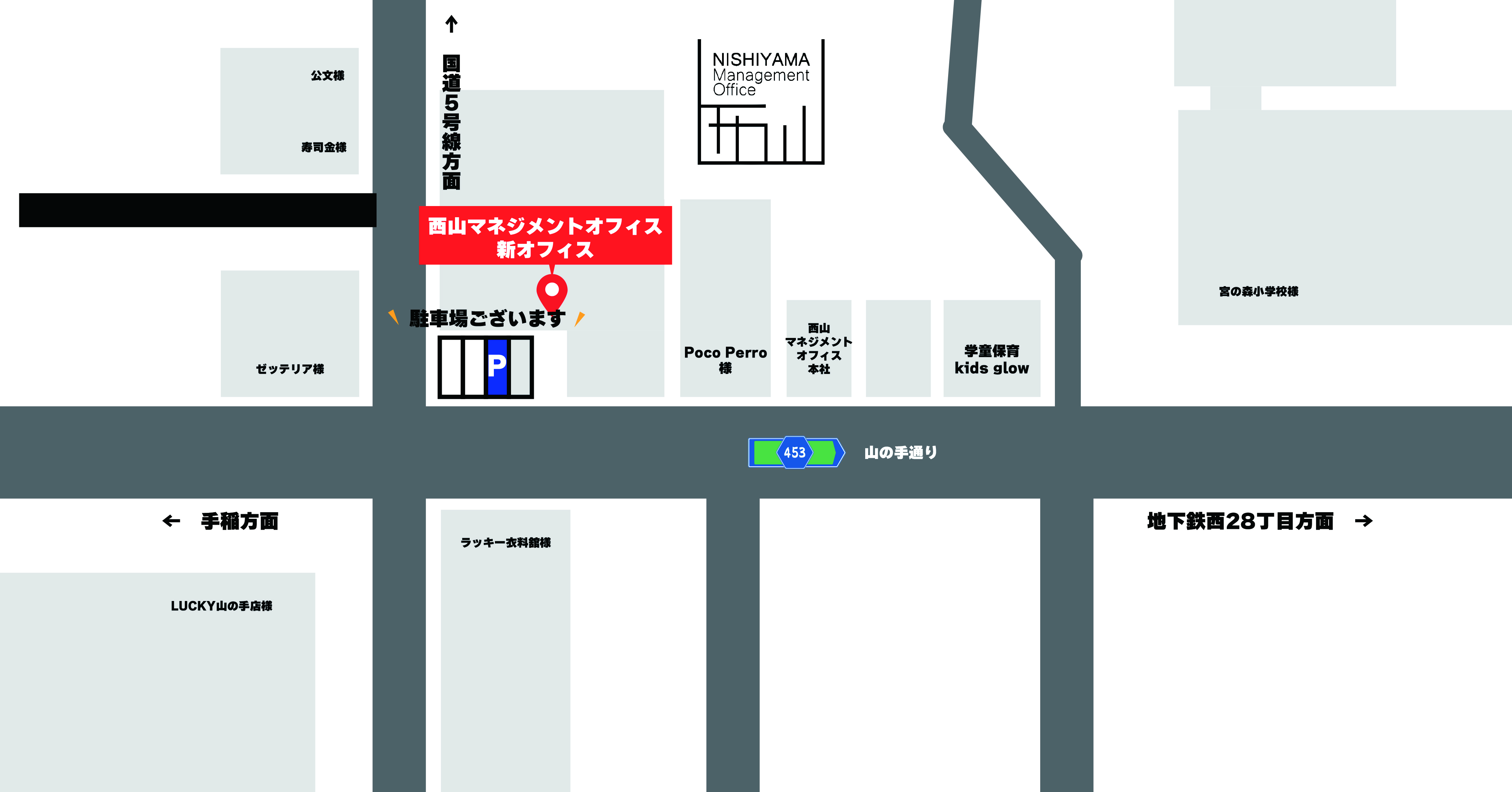 株式会社西山マネジメントオフィス オフィス移転のお知らせ 2025-11-27 株式会社西山マネジメントオフィスは(代表取締役 西山一生)は、業務拡大につき、2025年12月1日(月)より、オフィスを移転いたします。 現オフィスの向こう2軒隣りとなっております。 駐車場のご用意もございます。 お近くにお越しの際は、ぜひお立ち寄りくださいませ。 新オフィス 郵便番号:〒064-0954 住 所:札幌市中央区宮の森4条6丁目2−20 アルファコートX宮の森Ⅱ 1F 電話番号:011-615-5757 FAX :011-311-2355